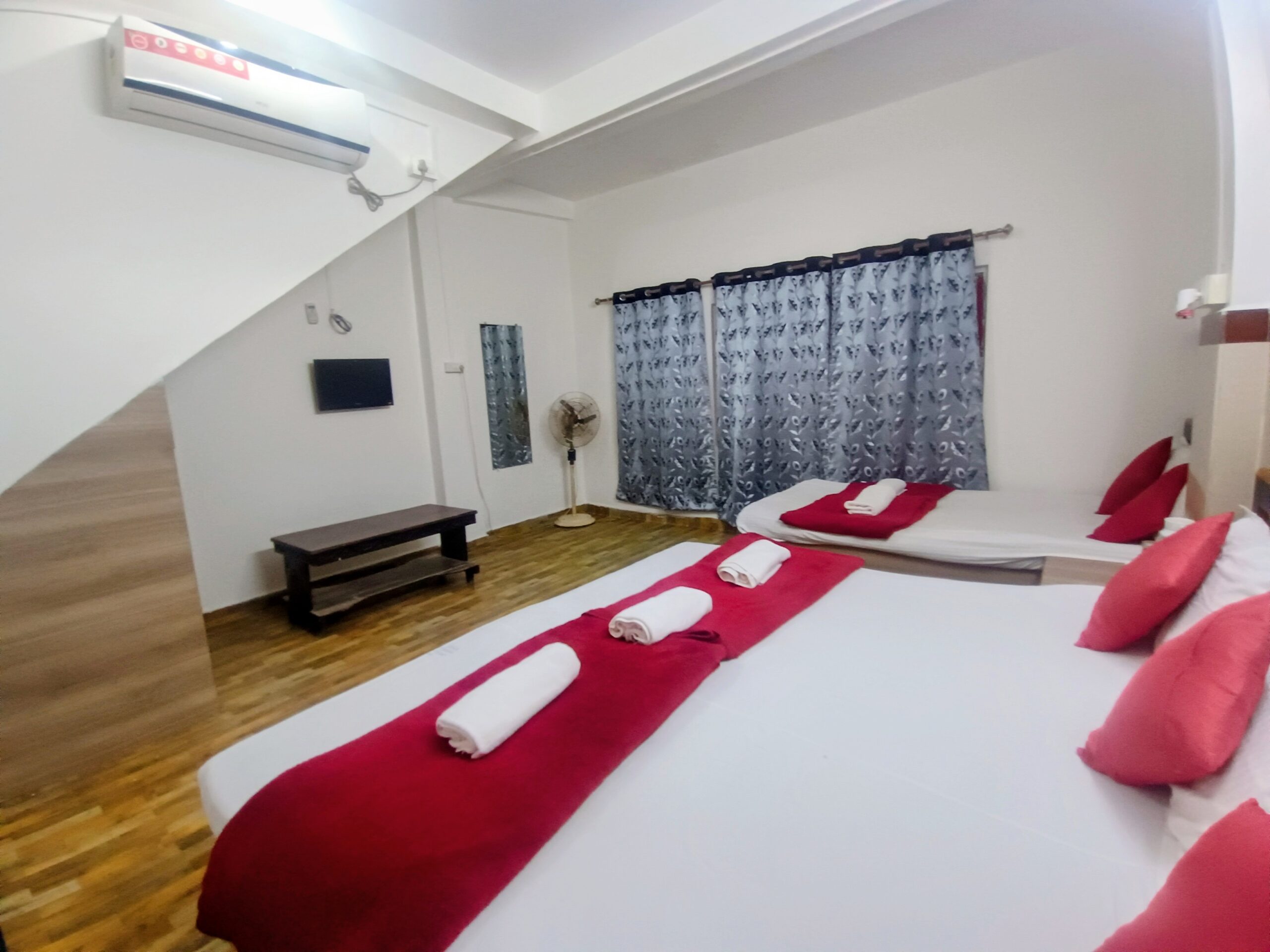 NON AC, FREE BREAKFAST, FREE WIFI, 24 HRS CHECK IN, AND 10.00 AM CHECK OUT.