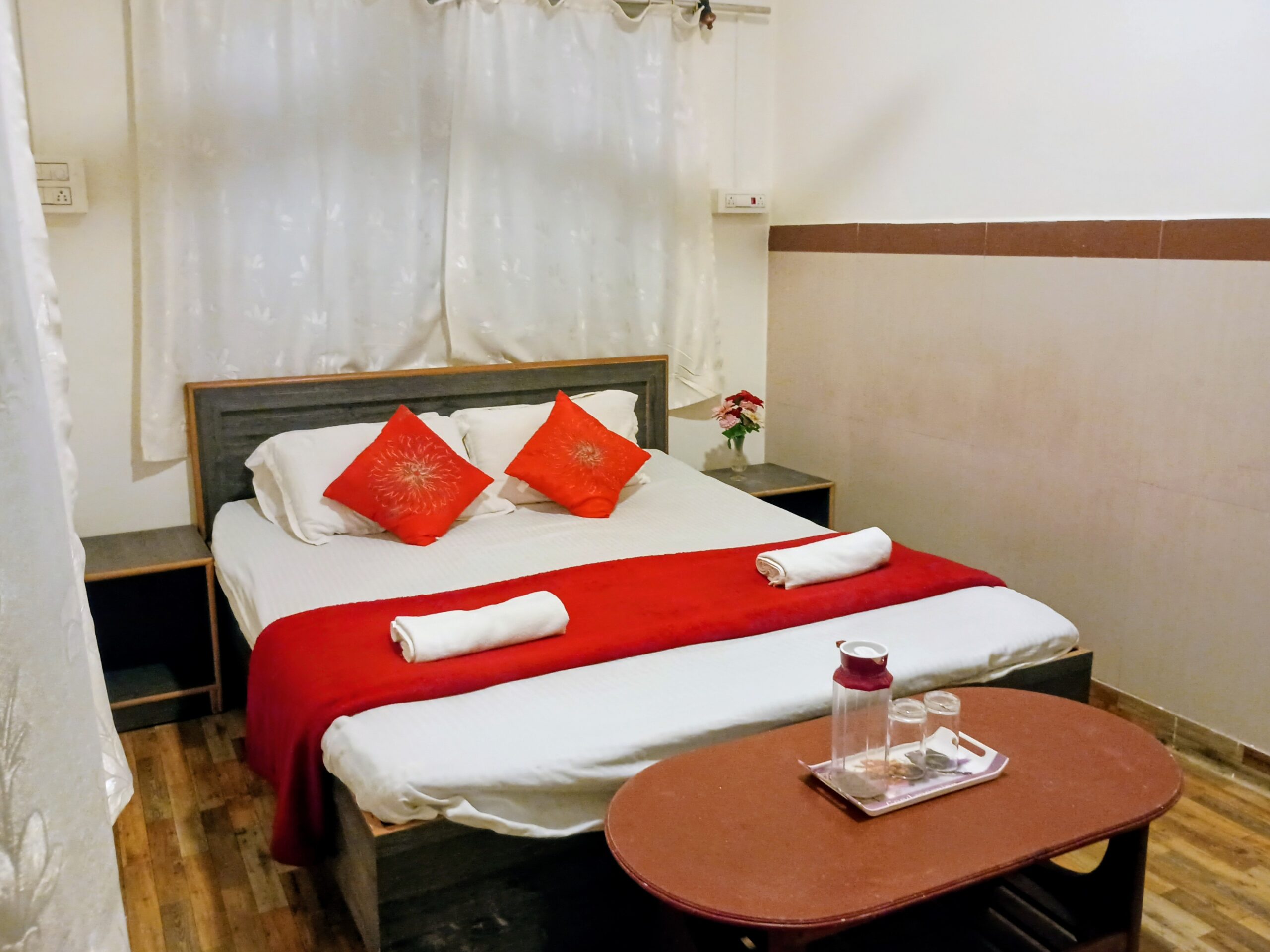 A/C AND NON AC, FREE BREAKFAST, FREE WIFI, 24 HRS CHECK IN, AND 10.00 AM CHECK OUT. (A/C INR 200 EXTRA)